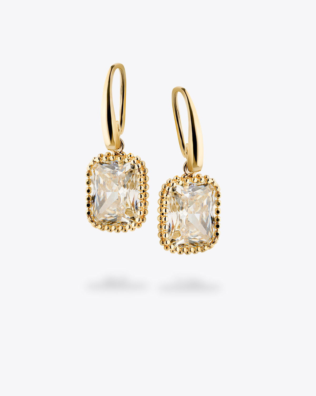 The Bloom Drop Earrings combine 18K gold with semi-precious zircon stones. You can choose your preferred stone color and gold finish. The Bloom Earrings are perfect for both everyday wear and special occasions.