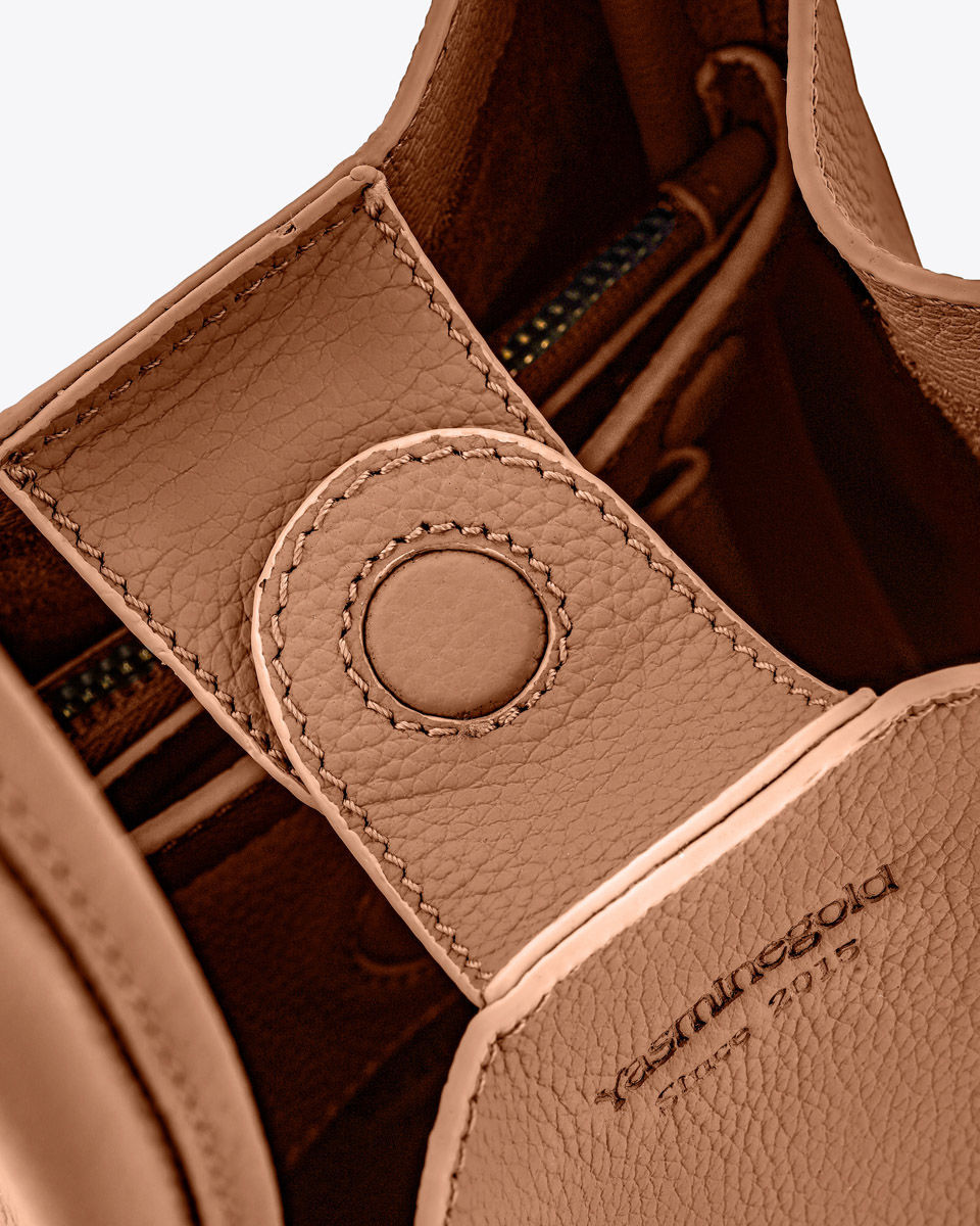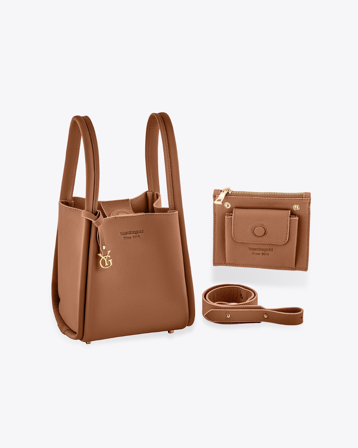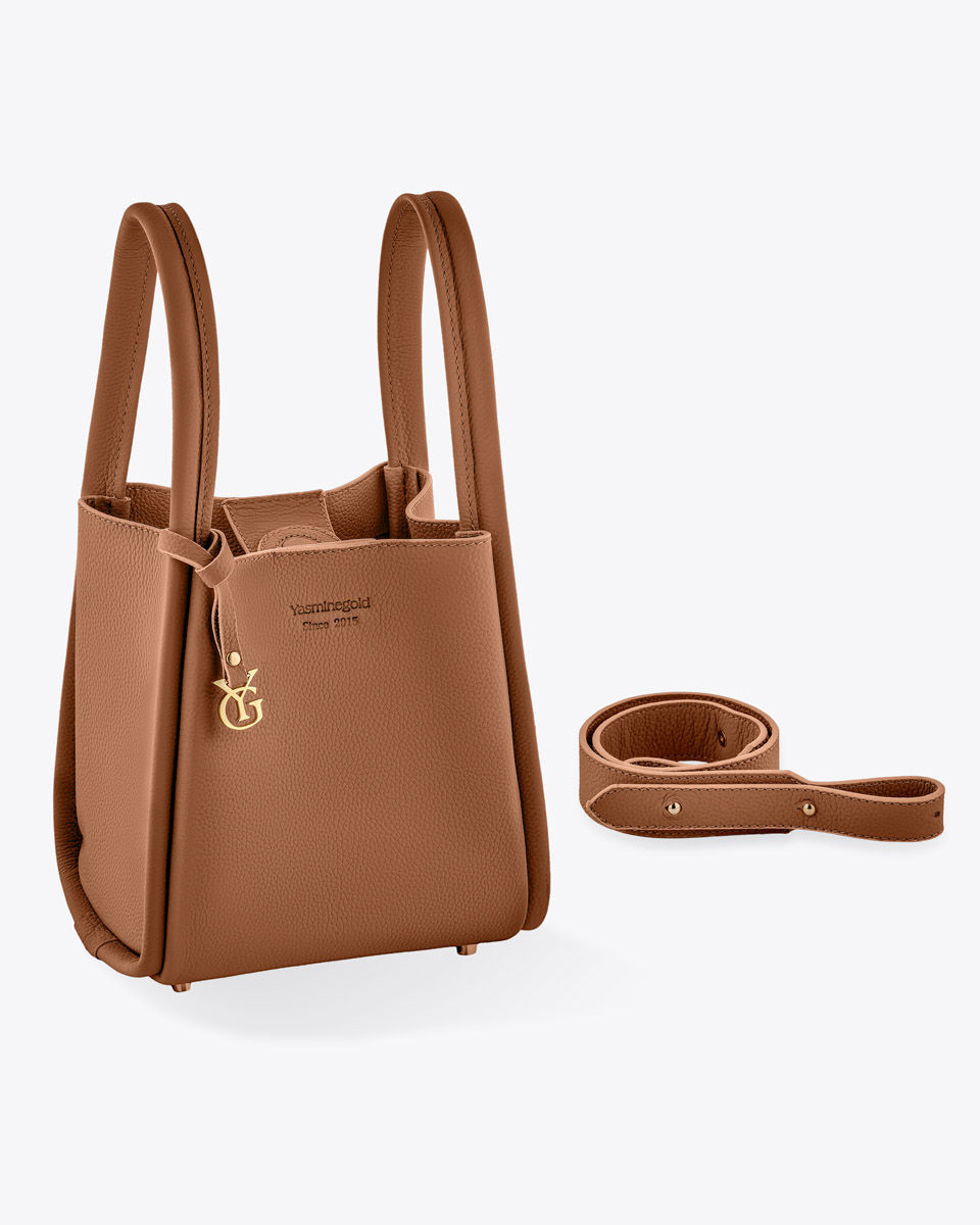 The Kai Collection bags from Yasmin Gold combine genuine leather with a YG logo in sterling silver, plated in 18k gold. Each bag is designed with a long strap and an internal wallet, allowing you to style it in versatile ways that suit your personal taste.