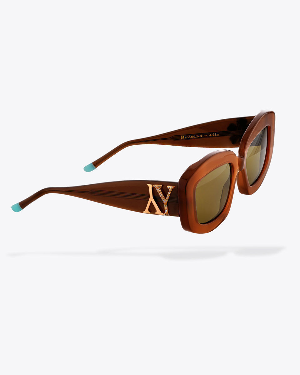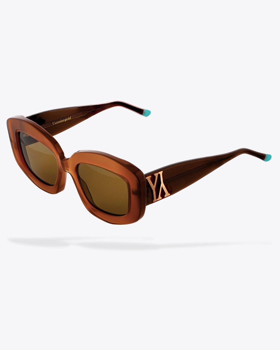 All Yasmin Gold eyewear features a signature 18K gold logo. In this updated model, the frames are embellished with Italian zirconia stones alongside the elegant YY gold logo. The gold weight is laser-engraved on the temple of each frame for added authenticity.